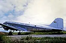 Kassala and Asmara were removed from the airline's list of destinations in 1952. In February that year, a fifth Dove was phased in. There was such a demand for flying that the toilets on the Doves were removed to make room for more seats, with these aircraft even carrying passengers in the cockpit. This prompted the airline to look for newer and bigger airliners, with the Douglas DC-3 and the de Havilland Heron being under consideration.[4] Flown with Austers and Doves, by March 1953 the carrier was operating a domestic network that was 4,800 kilometres (3,000 mi) long.[6] That year, the carrier incorporated the first four DC-3s into the fleet.[4] The boost in capacity allowed the company to carry both passengers and mail, to introduce new regular routes to Cairo and Wad Medani,[5]: 91 and to carry out aerial survey tasks for the government.[4] Also in 1953, the Chadian city of Abeche was made part of the route network, whereas regular flights to Jeddah were launched in June 1954.[7] Services to Athens commenced in the mid-1950s. Two more DC-3s were bought in 1956.[7] In 1958, after taking office, the Supreme Council of the Armed Forces decided to expand the carrier's international operations.[5]: 91 A seventh DC-3 was incorporated into the fleet that year.[7] Long-haul services started in June 1959 between Khartoum and London via Rome –the so-called "Blue Nile" service[8]– using a Viscount 831 that was acquired new earlier that year in a joint venture with British United Airways.[5]: 91 Beirut was added to the destination network in November the same year.[7] Also in 1959, the airline joined IATA.[9]