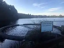 The Sudbury Reservoir (2.02 square miles) is an emergency backup Boston metropolitan water reservoir in Massachusetts, located predominantly in Southborough and Marlborough, with small sections in Westborough and Framingham.[3] It was created when the Sudbury Dam was constructed to impound the Stony Brook branch of the Sudbury River; no part of the reservoir lies in the town of Sudbury. Nearly 5,000 acres (2,000 ha) in the Sudbury Reservoir watershed are administered by the Massachusetts Department of Conservation and Recreation as a limited-access public recreation area.[2]