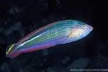 The rainbow slender wrasse (Suezichthys arquatus), also known as the painted rainbow wrasse,[2] is a species of marine ray-finned fish, a wrasse from the family Labridae. It is native to the western Pacific Ocean where it is found from Japan to Australia and east to New Zealand. It occurs on reefs at depths from 13 to 100 m (43 to 328 ft), usually over patches of sand. This species can reach 13.5 cm (5.3 in) in total length.[3]