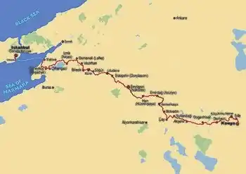| Trailheads | Eyüp, Istanbul 41°03′21″N 28°56′15″E / 41.055738°N 28.9375843°E Mevlana Museum, Konya 37°52′14″N 32°30′15″E / 37.8704468°N 32.5041645°E |