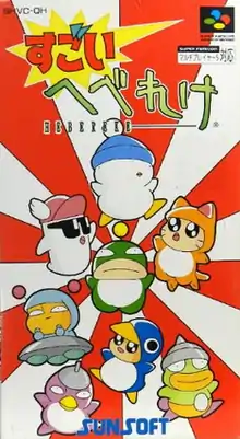 Sugoi Hebereke (すごいへべれけ, lit. "Amazing Hebereke") is a 1994 fighting game developed and published by Sunsoft in Japan for the Super Famicom on March 11, 1994. It is a spin-off of the Hebereke series, as well as Sunsoft's first attempt in the genre before they became better known for the 1995 Galaxy Fight: Universal Warriors, the 1996 Waku Waku 7, and the 1998 Astra Superstars.