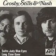 "Suite: Judy Blue Eyes" is a song written by Stephen Stills and performed by Crosby, Stills & Nash (CSN). It appeared on the group's self-titled debut album in 1969 and was released as a single, reaching number 21 on the Billboard Hot 100 pop singles chart. In Canada, "Suite: Judy Blue Eyes" peaked at number 11.[4] The song imitates the form of a classical music suite as an ordered set of musical pieces.