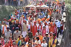 Subsequently, the five palanquins of Mahamaya are taken on a tour throughout Sundar Nagar so that everyone can have their darshan. After nightfall, all the deities depart to their respective places.