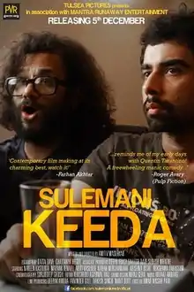 Sulemani Keeda (transl. A crazy urge) is an independent slacker comedy film directed by Amit V Masurkar and produced by Tulsea Pictures[1] in association with Mantra/Runaway Entertainment. It was first screened at the Mumbai Film Festival in 2013. The film is distributed by PVR Director's Rare and was released in Mumbai, NCR-Delhi, Bangalore, Pune, Ahmedabad and Kolkata on 5 December 2014. TVF is the online partner for the movie.