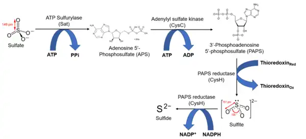 - ↑ Patron, Nicola J.; Durnford, Dion G.; Kopriva, Stanislav (2008-02-04). "Sulfate assimilation in eukaryotes: fusions, relocations and lateral transfers". BMC Evolutionary Biology. 8 (1): 39. doi:10.1186/1471-2148-8-39. ISSN 1471-2148. PMC 2275785. PMID 18248682.