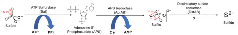 - ↑ "5.9C: Sulfate and Sulfur Reduction". Biology LibreTexts. 2017-05-09. Retrieved 2022-04-27.