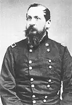 On the breaking out of the American Civil War he espoused the cause of the Union, and served with honor and distinction during the war.[1] On either April 9,[2] or 25,[1] 1861, he was appointed Colonel of the 10th Pennsylvania Volunteers, his first commission;[2] and served for some three months under the command of General Patterson, at which time the term for which the regiment was enlisted expired.[1] He was shortly after appointed to the command and organization of Camp Curtin, at Harrisburg, where, in the course of four months, he superintended the drill, disciplining, equipment and forwarding of twenty or thirty thousand troops to the seat of war.[1][2]