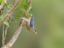 The sulphur-billed nuthatch (Sitta oenochlamys) is a species of bird in the family Sittidae. It is endemic to the Philippines. Its natural habitats are subtropical or tropical moist lowland forest and subtropical or tropical moist montane forest.[1] It is commonly found in mixed flocks along with Blue-headed fantails, sunbirds, flowerpeckers and other small forest birds.