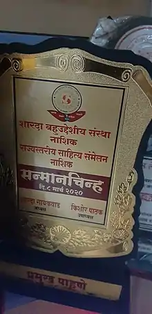 Suman Muthe is the recipient of more than 50 awards from different institutions and organizations from India and Internationally. She has been conferred the Ahilyadevi Holkar Award by the Government of Maharashtra in the past, has also been honoured with Siddha Sewa award by Swami Hardas Foundation in Pune. The foundation has been actively working in India since 1990 and has an active presence in many other countries. The award has been constituted to felicitate those who have shown exemplary contributions to the society. The "Siddha Sewa" award by Swami Hardas Foundation, Pune is her 22nd award in her list of recognitions. In the past she has been honoured with Amrutratna award for the work done for tribal women, Patrashri award for outstanding literary contributions, Patramaharshi award by Journalists Association, National Integration Fellowship award etc. Her participation in various rural projects for conservation of water, tribal women education, childcare education is well known. Besides doing grassroots work, she has written books, poems, delivers lectures and is a prolific writer in Marathi print media.