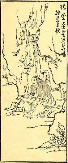 The classical Chinese stringed instrument qin 琴 "zither; [sometimes translated] lute" is called guqin 古琴 "old zither" in Modern Standard Chinese, owing to the common use of qin in names for instrumental loanwords (such as kouqin 口琴 "mouth organ; harmonica"). Sun Deng was renowned for playing a one-string version of the qin (一弦琴); the 499 Zhen'gao 真誥[3] says Sun Deng could "derive eight notes by plucking a single string."