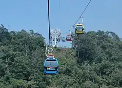 The ropeway consists of 16 supporting towers. It has a 1,877 meters of path length and 1,925 meters of total length.[4] The gondola consists of red, yellow and blue colors, which represent the sun, moon and lake respectively.[2] It has a total of 86 cars with maximum carrying capacity of 3,000 passengers per hour.[1]