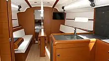 The boat has 74 in (188 cm) of standing headroom in the gallery, 73 in (185 cm) in the saloon and 76 in (193 cm) in the bow and aft cabins.[3][4][5]