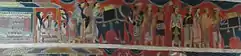 These frescoes portray sundry "Jathaka Stories" (the stories which portray previous birth stories of Buddha) like "Vessanthara","Sachchankira" and "Mandhathu" "jathaka stories", including the "Vessanthara Jathaka Story". Even though hill country tradition is local to the hill country temples' art work the frescoes here belong to the hill country tradition. Red, brown, black and blue are the main colours used in these murals.