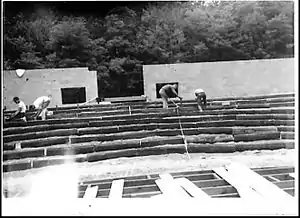 The two built a charming open-air amphitheater, seating 250 people. The amphitheater was originally designed by Zuckermann himself and redesigned and built in partnership with local contractors. It was located on a 55-acre estate in the rural town of Upper Black Eddy, Northern Bucks County, Pennsylvania, a bit more than one hour from New York City (where Zuckermann ran his business in Greenwich Village) and rather less from Philadelphia. The rural surroundings added to the appeal of the enterprise, as Michael Townsend Smith (who succeeded Britton as director in 1966) later wrote: