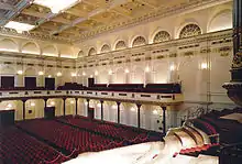 Hoch-Zeiten (High Times, or Marriages) is performed simultaneously in two different halls by five choral groups and five orchestral sections, respectively. The five divisions in each hall perform at independent speeds, producing "a tour de force of multiple superimposed tempi".[22] The performance is then repeated, with the audiences changing halls.[23] As such, these two versions are sometimes regarded as both the fifth and sixth scenes of Sonntag.[24] The basic structure of the orchestral version is identical to that of Hoch-Zeiten for Choir, but has added to it five duos and two trios performed by the first-desk players of the orchestra. These ensembles are recollections of characteristic moments from each of the seven operas in the Licht cycle, presented not in weekday order but in the order they were composed:[25]