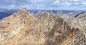 Sunlight Peak is a high mountain summit of the Needle Mountains range of the Rocky Mountains of North America. The 14,065-foot (4,287 m) fourteener is located in the Weminuche Wilderness of San Juan National Forest, 28.5 miles (45.8 km) northeast by north (bearing 32°) of the City of Durango in La Plata County, Colorado, United States.[1][2][3]