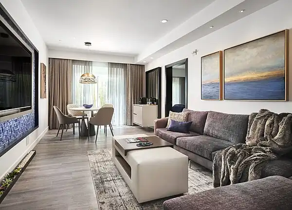 The Sunset Marquis is inspired by Mediterranean style villas, with white and cream buildings and clay tile roofs. It has 152 rooms.[3]