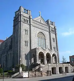 The growth of the Eighth Ward was helped by the development of Sunset Park, a public park initially bounded by Fifth and Seventh Avenues between 41st and 43rd Streets. The city of Brooklyn acquired the land in 1891 as part of its plan to build several parks citywide.[53][54]: 3 The park would be expanded southward to 44th Street in 1904.[53] The park was so named because its elevated location provided views of the sunset to the west.[13] Though development of the park was precluded by its irregular topography,[55] nevertheless it became a popular gathering place for Bay Ridge and South Brooklyn residents.[56] Residential construction boomed in the late 19th and early 20th century amid real estate speculation initiated by the construction of the park and the Fifth Avenue elevated line.[5] By 1909, there was significant development in the area surrounding the park,[57] and the immediate surrounding area became known as "Sunset Park" as well.[22]