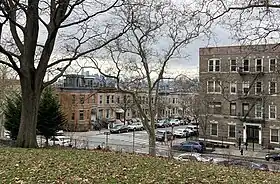 Development in South Brooklyn continued even though the Panic of 1893 had resulted in the stoppage of nearly all developments in the rest of Brooklyn.[45] Due to the large number of residential developments being built in South Brooklyn, in 1893 the Brooklyn city government banned the erection of wood-framed structures between Fourth and Fifth Avenues south of 39th Street.[46] By 1895, the Brooklyn Daily Eagle noted, "Probably no ward in the city has been built up as rapidly as the Eighth Ward."[47] Two-story on basement row houses were the most common building class to be erected in modern-day Sunset Park in the 1900s and 1910s due to their wide appeal, with the majority of these being two-family homes.[48][49][50] On the avenues, row houses were built with commercial space on the ground floor, and the residential units were located above.[36] The Eagle said in 1901 that two-family houses were "particularly attractive to people who desire comparatively small apartments, but who object to living in flats, and they appeal to this class on account of their being more quiet, and possibly, more exclusive."[51] A notable exception to this was the group of single-family homes in central Sunset Park, though these were also easy to build.[52]