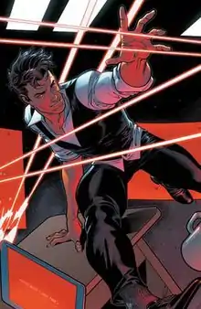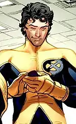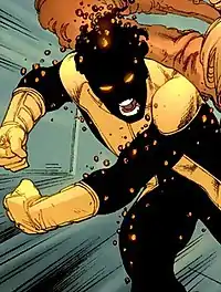 When the time travelling antihero Cable takes over the New Mutants and turns them into the paramilitary group X-Force, Sunspot parts ways with the team.[13] During this time, Sunspot is tutored by Gideon of the Externals, an old business partner of Roberto's father (who has since died), who suspects Sunspot to be a fellow External.[14] Gideon experiments on Sunspot, granting him new powers such as flight and the ability to fire blasts of solar energy.[15] For a time, Sunspot becomes lost in the spacetime continuum after interfering with the teleportation powers of Locus.[16] During this time, a villain called Reignfire appears, with a remarkably similar appearance to Sunspot.[17]