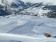 SuperDévoluy (Superdévoluy - La Joue du Loup) is a ski resort in the commune of Dévoluy in the French Alps. It is located in the « Alpes du Sud » , French department in the Provence Alpes Cotes d’Azur (PACA) region. With the other ski resort La Joue du Loup, there are 100 km of ski pistes, with 5 black pistes.[1]