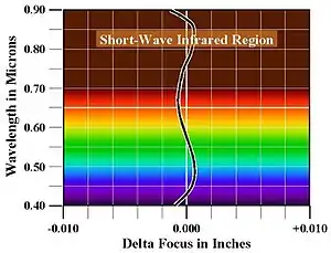 The superachromat or superachromatic lens was first conceived and developed by Maximilian Herzberger as the ultimate well-corrected lens. The color shift curve of a superachromat is a quartic, meaning that in theory four separate colors can be brought to focus in the same plane, while simultaneously correcting spherical aberration and field aberrations. This near-perfect correction of chromatic aberration is highly beneficial in film and digital multi-spectral photography, as a superachromat can focus near-infrared energy in the 0.7 to 1.0 micrometer wavelength band in the same focal plane as visible light, eliminating the need for refocusing. Unfortunately, due to the limited selection of optical glasses and partial dispersion properties, superachromats must be manufactured with costly fluorite glasses and to very tight tolerances.