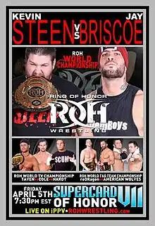 - ↑ ""Supercard of Honor VII" - 4/5/13 NYC". Ring of Honor. Retrieved 2013-03-20.