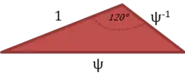A triangle with side lengths ψ, 1, and ψ-1 has an angle of exactly 120 degrees opposite the side of length ψ.[1]