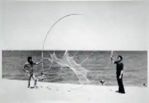 Critics often identify a kind of contradiction among influences within the group, which ranged from modern art critic Clement Greenberg to Chinese calligraphy painting. Molly Warnock writes for Artforum that Supports/Surfaces artists mixed several seemingly incompatible elements including color field painting and post minimalism. These contradictions, while leading to some of the many arguments and fragmentation that ultimately resulted in the group's dissolution, also show a distinctive push to combine disparate influences into a new philosophical position.[17] For example the outdoor exhibitions the group was known for in its early years, which took place in fields, on beaches and in the streets and attempted to relocate the place art occupied in society.[11]