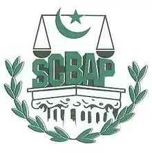 The Supreme Court Bar Association (Urdu: عدالتِ عظمیٰ مجلسِ وکلاء)(SCBAP) is an association established in 1989 comprising the supreme court lawyers in Pakistan. The Legal Practitioners and Bar Councils Act 1973 provides for the forming, recognition and functioning of Bar Associations for supreme court lawyers working under the control of Pakistan Bar Council. It is an independent Bar association whose aim is to uphold the rule of law and the cause of justice and protect and promote the interest of the legal profession as well as that of the public.