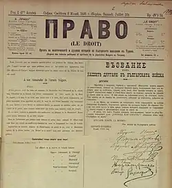 Appeal of the Supreme Committee to the Bulgarian officers about participation in the action of 1895 in newspaper "Pravo".