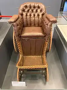 At the entrance of the museum, there are 18th-century patient chairs and prosthesis-orthotics. The objects in the middle axis are 19th-century wooden room chair, potty holder commode, discharge containers, thermophores of the 1900s, hygienic vaginal syringes used in the 1920s,walking sticks and crutches, scales, sick chairs, massage tools, backscratchers. There are 19th-century built UV radiation device, prosthesis-orthotics, hernia bends and stretchers from the 1800s.[1][4]