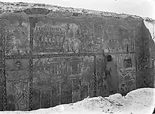 Photograph of Susan M. Hopkins cleaning Synagogue in Dura-Europos between 1932-1933