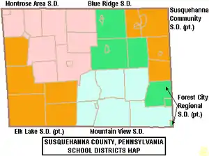 Susquehanna Community School District is a third-class school district in Susquehanna and Wayne Counties in Pennsylvania. The district's population was 5,195 at the time of the 2010 United States Census.