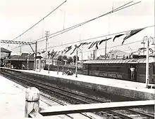 Sutherland station opened on 26 December 1885 as the interim terminus of the Illawarra line when it was extended from Hurstville.[2][3] The station opened for general rail traffic on 1 March 1886. It consisted of a brick station facing both the road and railway, a goods shed, and a stationmaster's residence.[4] On 9 March 1886, the line was extended to Waterfall.