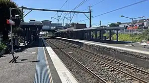 ![]() Northbound view from Platform 1 in April 2023 | |||||||||||||||||||||||||||