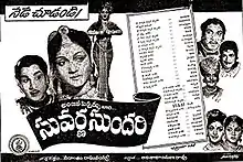 Suvarna Sundari (transl. Golden Beauty) is a 1957 Indian Telugu-language swashbuckler film directed by Vedantam Raghavayya.[1] It stars Akkineni Nageswara Rao, Anjali Devi with music composed by P. Adinarayana Rao. The film was produced by Adinarayana Rao under the Anjali Pictures banner.