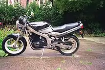 The Suzuki GS500 is an entry level motorcycle manufactured and marketed by the Suzuki Motor Corporation. Suzuki produced the GS500 and GS500E from 1989 on and the fully faired model, GS500F from 2004 on.[16] The GS500 is currently being produced and sold in South America.[5] The GS500 has been described in the motorcycle literature as a best buy and an excellent first bike, with adequate if not exciting power for more experienced riders (approximately 40 HP at the rear wheel).[17]