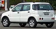 An arrangement with Subaru resulted in the Hungarian-manufactured Ignis being sold alongside the Suzuki-badged model in Europe as the Subaru G3X Justy.[25] Apart from the slightly larger fog lights, different front bumper and grille, plus badging—the Subaru was identical to the Suzuki.[26][27] Subaru debuted the Justy at the Frankfurt Motor Show in September 2003, going on sale immediately after.[28] Two AWD drive models were available—1.3- and 1.5-litre petrols; there was also a FWD, 1.3-litre turbocharged diesel model.[28] The G3X Justy was not sold in United Kingdom or Ireland in right-hand-drive. The G3X Justy was transferred in 2007 to the Daihatsu Boon/Sirion (M300).[29]