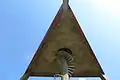 The pyramidal water tank is supported by three slender ferro-concrete legs which meet at the top of the tower. The centrally placed steps, also made of concrete, wind up elegantly from the ground.[3] The water tower was taken out of service in 1988 when alterations to the water supply system were introduced. Since 1990, it has been a listed building.[4]