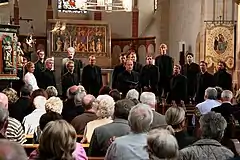 Svanholm Singers is an internationally acclaimed[1][2][3] Swedish male-voice chamber choir founded in 1998 and based in Lund. It comprises around 20 singers, most of whom between 20 and 30 years of age. The choir is led by conductor Sofia Söderberg,[4] and is known for its precise intonation, tonal focus, and vivid dynamics.[1] Svanholm Singers performs concerts and tours mainly in Europe and Asia.