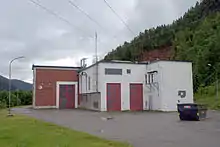 The Svorka Hydroelectric Power Station (Norwegian: Svorka kraftverk) is a hydroelectric power station in the municipality of Surnadal in Møre og Romsdal county, Norway.[1][2][3] It is located about 4 kilometers (2.5 mi) northeast of the village of Bøverfjorden. It utilizes a drop of 260 meters (850 ft) from the lake Langvatnet, which is regulated between 274 meters (899 ft) and 276 meters (906 ft),[3] to the Bøvra River. The Svorka River is also regulated for the plant. Its catchment area is 104.5 square kilometers (40.3 sq mi).[2] Water is also transferred from several lakes: Litlbøvervatnet is regulated between 343 meters (1,125 ft) and 333 meters (1,093 ft), Solåsvatnet and Geitøyvatnet are regulated between 336 meters (1,102 ft) and 331 meters (1,086 ft), and Andersvatnet is regulated between 294 meters (965 ft) and 305 meters (1,001 ft).[3] The plant has a Francis turbine and operates at an installed capacity of 25 MW, and has an average annual production of about 111 GWh.[1][2][3] The plant came into operation in 1963 and is owned 50% each by Svorka Energi and Statkraft.[1][2][3]