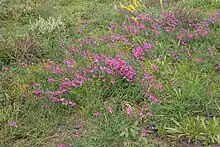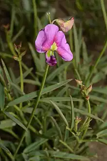 Swainsona campylantha, commonly known as Gilgai Darling pea,[2] is a species of flowering plant in the family Fabaceae and is endemic to inland areas of Australia. It is a low-growing perennial with imparipinnate leaves usually with up to 7 narrowly lance-shaped to narrowly elliptic leaflets, and racemes of 2 to 10 pink to purple flowers.