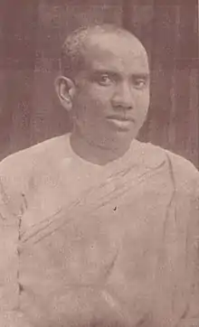 Swami Vipulananda (Tamil: சுவாமி விபுலாநந்தர்; 27 March 1892 – 20 July 1947), also known as Vipulananda Adigal, was a Sri Lankan Tamil Hindu social reformer, literary critic, author, poet, teacher and ascetic from the Eastern Province of Sri Lanka. Vipulananda was an early pioneer associated with the Indian-based Ramakrishna Mission in Sri Lanka. Along with other reformers, Vipulananda was instrumental in the revival of the Hindu religion and native traditions in Sri Lanka after a long period of dormancy and decline during the previous 500 years of colonial rule by various European powers.[1][2]