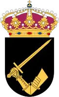 Blazon: "Sable, an arm embowed and vambraced, in the hand a sword, all or".[4]