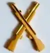 The coat of the arms of the Swedish Infantry Combat School (Infanteriets stridsskola, InfSS) 1982–1991. Blazon: "Azure, two muskets in saltire between two letters of S, inside an open chaplet of laurels, all or".[7]