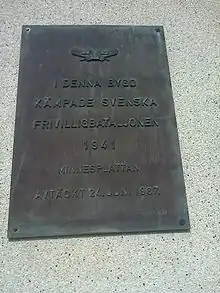A plaque at the Hanko town hall commemorating the Swedish Volunteer Battalion.