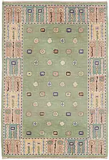 Carpets and rugs have been handmade in Sweden for centuries, taking on many different forms and functions over the course of time. Rugs woven in the traditional Oriental manner, especially in the Ottoman Empire and points east, were originally brought to Sweden over trade routes as early as the early Middle Ages. In the centuries that followed, Swedish rug-makers often infused their works with themes and motifs traditionally found in Oriental rugs. Eventually, Swedish rug-makers would begin to use Oriental rug-making techniques, but themes and motifs more consistent with the artistic and cultural heritage of Sweden. By the early modern periods, rugs had long been an important avenue of art – especially folk art – in Swedish culture. By the beginning of the twentieth century, the craft was seen as being an important artistic and cultural practice throughout Sweden, and designers began to make rugs that had a broad international appeal. Swedish rugs from the mid-twentieth century remain among the most desirable and sought after in the rug world.