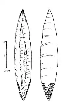 Three periods can be distinguished. The crude flint blades of Early Swiderian are found in the area of Nowy Mlyn in the Holy Cross Mountains region. The Developed Swiderian appeared with their migrations to the north and is characterized by tanged blades: this stage separates the northwestern European cultural province, embracing Belgium, Holland, northwest Germany, Denmark and Norway, and the Middle East European cultural province, embracing Silesia, Brandenburgia, Poland, Lithuania, Belarus, Western Russia, Ukraine and the Crimea. Late Swiderian is characterized by blades with a blunted back.[2]