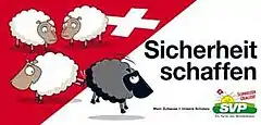 - ↑ Foulkes, Imogen (6 September 2007). "Swiss row over black sheep poster". BBC News. Geneva. Retrieved 15 February 2011.